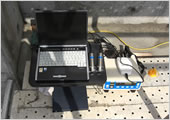 | 超音波法(土研法)によるコンクリートの強度推定を行う場合、音速と強度の関係式(検量線)が必要です。φ100×200Lの円柱供試体を製作し、各材齢の音速及び圧縮強度を測定。この測定データからコンクリート音速と圧縮強度の関係式(検量線)を作成します。 |